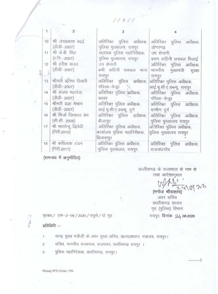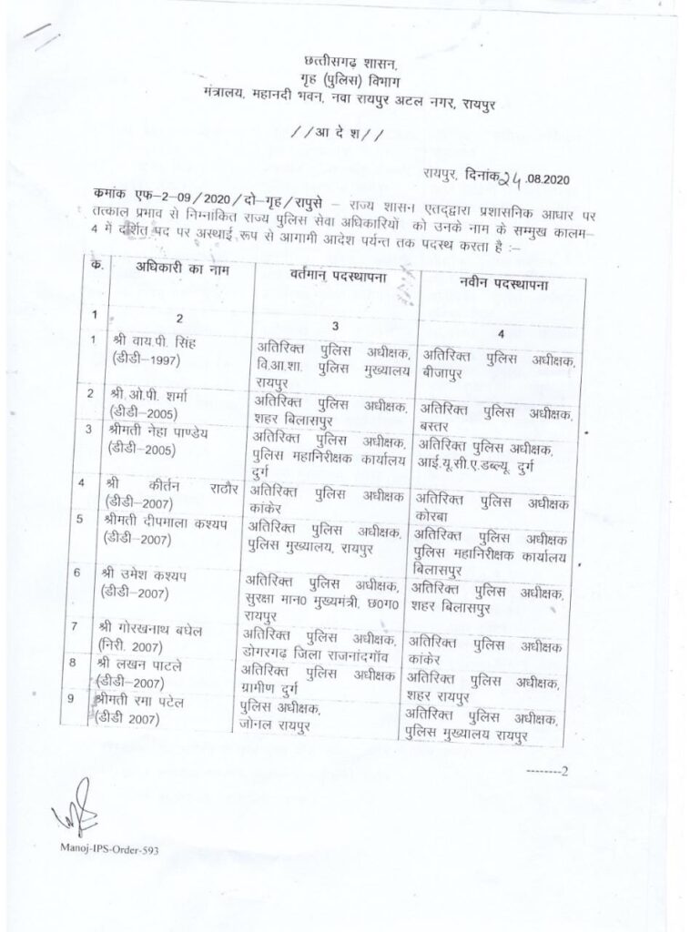 कोरबा 24 अगस्त ( KRB24NEWS ) : .छत्तीसगढ़ पुलिस में बड़े पैमाने पर फेरबदल हुआ है . कई जिलों के अतिरिक्त पुलिस अधीक्षकों का तबादला किया गया है कीर्तन राठौर बने कोरबा के नए अतिरिक्त पुलिस अधीक्षक बनाये गए है। इसका आदेश आज जारी कर दिया गया है।