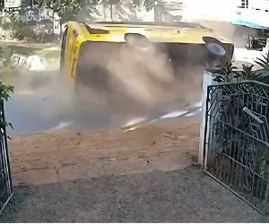 घटना की वीडियो सीसीटीवी कैमरे में कैद हो गया है और यह वीडियो सोशल मीडिया पर वायरल हो रहा है। इस वीडियो में स्कूल बस अचानक नियंत्रण खोती हुई और सड़क पर पलटती हुई दिखाई दे रही है। इसके तुरंत बाद स्थानीय लोगों को बस की ओर भागते हुए देखा जा सकता है। हालांकि, लाइव हिन्दुस्तान इस वीडियो की प्रामाणिकता की पुष्टि नहीं करता है।