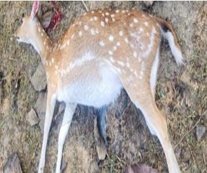 कोरबा : पाली वनपरिक्षेत्र में एक मादा चीतल कक्ष कमांक पी. 149 में नेशनल हाइवे किनारे मृत अवस्था में जिसका उम्र लगभग 2-3 वर्ष का है वन कर्मचारी ने वन गस्ती के दौरान पाया अपने वरिष्ठ अधिकारियों को सूचना देकर तत्काल मौके पर पहुंचे तथा घटना स्थल का निरीक्षण करने पर प्रथम दृष्यता पाया की चीतल जंगल से हृ॥-130 कास करते समय अज्ञात वाहन से टकराया जिसके कारण चीतल की मृत्यु हुई है चीतल का पशु चिकित्सक पाली के द्वारा शव परीक्षण किया गया, शव परीक्षण के दौरान चीतल का पीछे का एक दाहिना पैर टूटा था और सिर पर चोट का निशान था और चीतल के पेट में एक नग मृत बच्चा मादा चीतल पाया गया, चीतल की मृत्यु अज्ञात वाहन से होना पाया गया, शव परीक्षण कर दाह संस्कार उपवनमण्डलाधिकारी पाली की उपस्थिति में कराया गया ।