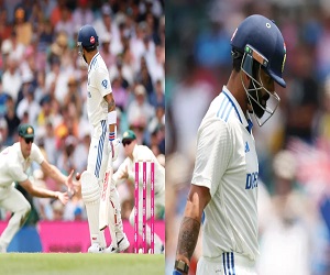 दूसरे सेशन में विराट कोहली को ऋषभ पंत का साथ मिला और दोनों धीरे-धीरे पारी को आगे बढ़ाने में लग गए। अभी दोनों के बीच 15 रनों की साझेदारी हुई ही थी कि कोहली ने फिर वही गलती दोहरा दी जिसका खामियाजा वो इस सीरीज में बार-बार भुगतते आ रहे हैं। कोहली ने स्कॉट बोलैंड की बाहर जाती गेंद को छेड़ने की कोशिश की। बोलैंड ने 32वें ओवर की तीसरी गेंद चौथे स्टंप पर बैक ऑफ गुड लेंथ डाली। कोहली ने इस पर डिफेंस का प्रयास किया लेकिन गेंद बल्ले का मोटा बाहरी किनारा लेकर स्लिप में खड़े ब्यू वेबस्टर के हाथों में चली गई। इस तरह कोहली की पारी समाप्त हो गई। उन्होंने 69 गेंदों का सामना किया और सिर्फ 17 रन बनाए। दिलचस्प बात ये रही कि कोहली अपनी इस 69 गेंदों की पारी में एक भी बाउंड्री नहीं जड़ सके। इसके साथ ही कोहली के नाम एक अनोखा रिकॉर्ड दर्ज हो गया।