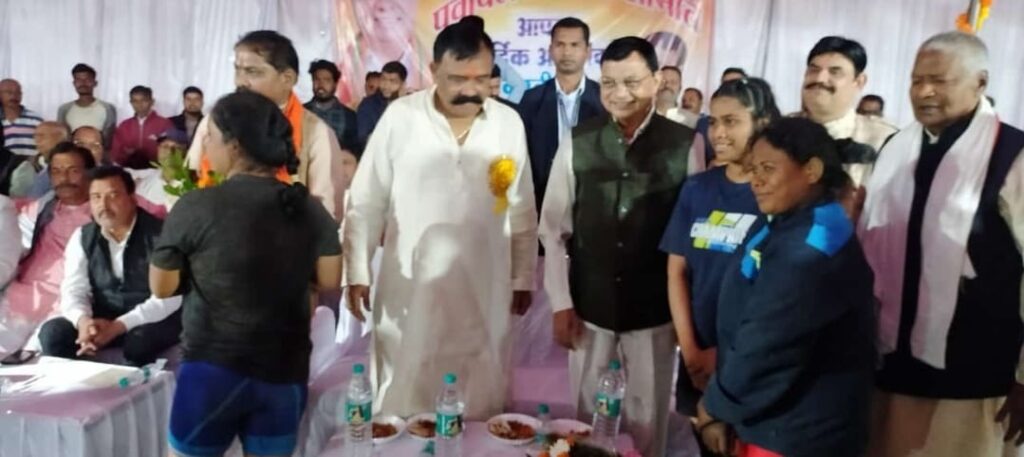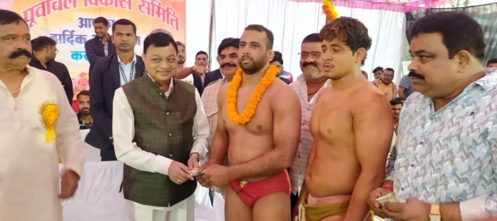 पूर्वांचल विकास समिति के तत्वाधान में शहर के रिकार्डों बायपास रोड पर स्थित पूर्वांचल भवन प्रांगण में विशाल कुश्ती दंगल का आयोजन किया गया था जिसमें देश भर से तीन दर्जन से अधिक नामी गिरामी पहलवानों ने अपनी उपस्थिति दर्ज की जिसके परिणाम स्वरूप भारी दर्शकों के बीच पहलवानों द्वारा रोचक दाव पेच के साथ विशाल दंगल कुश्ती संपन्न हो गया l इस अवसर पर पूर्वांचल विकास समिति के केंद्रीय अध्यक्ष आर ए पांडे ने बताया कि अंतर्राष्ट्रीय कोच रविंद्र मिश्रा के नेतृत्व में कुशल कोच के सहयोग से निर्विवाद विशाल कुश्ती दंगल संपन्न होने पर क्षेत्र की जनता जनप्रतिनिधि व प्रेस के प्रति आभार व्यक्त कियाl विशाल कुश्ती का प्रारंभ निर्धारित स्थान पर दोपहर 1:00 बजे प्रारंभ हुई जिसमें छत्तीसगढ़ सहित देश के नामी गिरामी पुरुष व महिला पहलवानों ने भाग लिया तथा अपना दावपेच व रोचक कर्तव् दिखाकर दर्शकों का मन मोह लिया l कुश्ती में स्थानीय विधायक व छत्तीसगढ़ कैबिनेट के वाणिज्य व उद्योग मंत्री लखन लाल देवांगन ने बिलासपुर छत्तीसगढ़ के टमाटर पहलवान का रोचक कर्तव्य देखकर भाव विभोर हो गए उन्होंने अपने उद्बोधन में कहा कि कोरबा की धरती पर देश के कोने-कोने से आए पहलवानों का हम स्वागत करते हैं और आने वाले समय में कुश्ती दंगल और अधिक रोचक और विस्तार रूप ले इसके लिए हर संभव सहयोग करेंगे, कोरबा के जिला भाजपा अध्यक्ष मनोज शर्मा ने भी अपने विचार व्यक्त किए l
