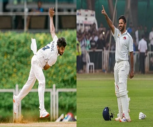 शार्दुल ठाकुर ने मुंबई और मेघालय के बीच खेले जा रहे रणजी मैच में कमाल का प्रदर्शन किया है। उन्होंने मेघालय के खिलाफ खेले गए मुकाबले के तीसरे ओवर में ही हैट्रिक ले लिया है। शार्दुल ठाकुर ने इस मुकाबले में बालचंदर अनिरुद्ध, सुमित कुमार और जसकीरत सिंह सचदेवा को आउट किया है। यह तीन बल्लेबाज डक पर आउट हुए। जिसके कारण मेघालय ने सिर्फ दो रन के स्कोर पर अपने छह विकेट खो दिए। शार्दुल ठाकुर काफी शानदार फॉर्म में हैं। इससे पहले जम्मू-कश्मीर के खिलाफ खेले गए मुकाबले में उन्होंने पहली पारी में 57 गेंदों पर 51 रन और दूसरी पारी में 135 गेंदों पर 119 रनों की पारी खेली थी।