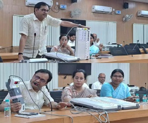 कलेक्टर एवं जिला निर्वाचन अधिकारी श्री अजीत वसंत के निर्देशन में रिटर्निंग अधिकारी श्री मनोज कुमार बंजारे की उपस्थिति में वरिष्ठ मास्टर्स ट्रेनर्स डॉ एम एम जोशी,जिला स्तरीय मास्टर्स ट्रेनर्स श्रीमती उपासना ओझा, श्रीमती लक्ष्मी राव ने इस चुनाव में प्रयुक्त हो रहे एम 2 मशीन के सम्बंध में विस्तार से जानकारी देते हुए मतदान के दौरान अपने पसंद के उम्मीदवार को बैलेट यूनिट में मतदान करने के तरीकों को बताया। उन्होंने बताया कि वार्ड क्रमांक 18 को छोडक़र 292 मतदान केंद्रों में दो बैलेट यूनिट होगी।