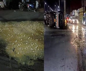 बिलासपुर : तिफरा ओवरब्रिज पर आज अजब नजारा देखने को मिला, जहां सड़क अंडा-अंडा हो गया. दरअसल, अंडों से भरा एक ट्रक अनियंत्रित होकर डिवाइडर से टकरा गया और पलट गया. इस हादसे में ट्रक में लोड हजारों अंडे सड़क पर बिखर गए और पूरा रास्ता अंडों से पट गया, जिससे वहां फिसलन हो गई.