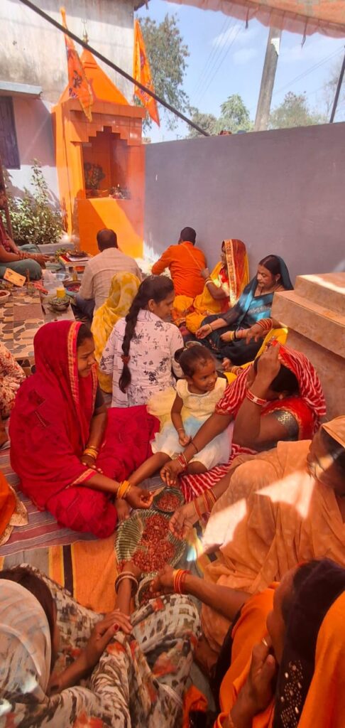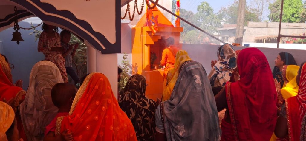 पूजा में महराज सपन पाण्डेय केराझरिया ने पूजा समापन कराएं।नवनिर्मित मंदिर में हनुमान जी की विधि-विधान से प्राण-प्रतिष्ठा की गई। इस अवसर पर भंडारे का भी आयोजन किया। जिसमें बड़ी संख्या में श्रद्धालुओं ने शामिल होकर प्रसादी का लाभ लिया।प्राण प्रतिष्ठा में हनुमान जी की नवीन प्रतिमा का मंत्रोच्चार व पंचामृत से अभिषेक कर विधि-विधान से हनुमान जी की प्रतिमा को विराजित किया