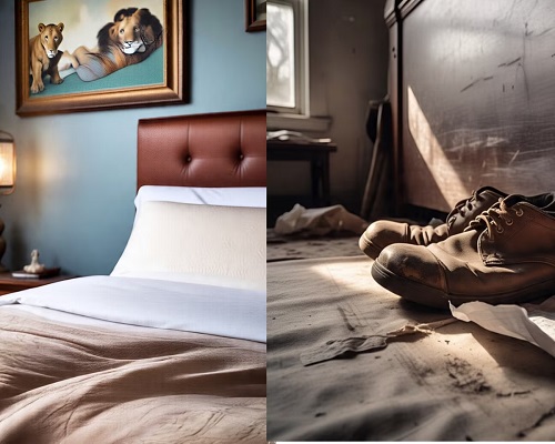 अपने बेडरूम में ऐसी तस्वीर तो बिल्कुल भी ना लगाएं जिसमें कोई भी जानवर दिखें। उदासी वाली तस्वीरें जैसे सुनसान सा रास्ता, अकेला या रोता हुआ बच्चा और सूखे हुए पेड़ की तस्वीर ना लगाएं। ऐसी तस्वीरें लगाने से जीवन में नेगेटिव एनर्जी आसानी से आती है। इससे बचने के लिए ऐसा ना करें।