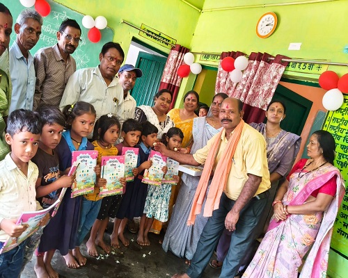 बाई के मुख्य आतिथ्य , प्रधानपाठक अनिल कँवर की अध्यक्षता,प्रभारी नोडल प्राचार्य विनोद जायसवाल , संकुल समन्वयक जीवन सिंह मरकाम,उपसरपंच हरप्रसाद पाटले के विशिष्ट आतिथ्य में सम्पन्न हुआ।इस अवसर पर शाला विकास समिति के अध्यक्ष महाराज सिंह मराबी ,पंच मंजू बाई की उपस्थिति रही। सर्वप्रथम कुमुदिनी राम,लोकेश्वरी वैष्णव एवं पुष्पलता भार्गव ने सरस्वती वंदना का गायन किया।प्रभारी नोडल प्राचार्य विनोद जायसवाल ने रोचक प्रसंग के माध्यम से शिक्षा में बच्चों के साथ माता के योगदान को बखूबी समझाया।संकुल समन्वयक मरकाम ने शासन की विभिन्न योजनाओं को बताया। उपसरपंच हरप्रसाद ने बच्चों को मोबाइल से दूरी बनाते हुए नियमित पढ़ाई पर ध्यान देने को कहा।तत्पश्चात सभी अतिथियों ने विद्यालय के नव प्रवेशी बच्चो का तिलक रोली,फूलमाला और मिठाई खिलाकरउन्हें शिक्षा की मुख्य धारा से जोड़ा।संकुल केंद्र प्राथमिक परीक्षा में प्रथम स्थान के लिए एंजल और आराध्या को,द्वितीय स्थान के लिए अनिकेत और हंसिका को सम्मानित किया गया।सभी अतिथियों ,पालकों एवं बच्चो को विद्यालय परिवार की तरफ से न्यौता भोज कराया गया।कार्यक्रम का संचालन पुष्पलता भार्गव ने एवं आभार प्रधानपाठक अनिल कंवर ने किया।कार्यक्रम में जैतराम ध्रुव,रवि चंद्रा, कुमुदिनी राम,विनोद जायसवाल,जीवन सिंह मरकाम, लोकेश्वरी वैष्णव,प्रफुल्ला भगत,ज्योति सारथी,अमरीका , करिश्मा सहित गणमान्य नागरिक,पालक एवं पूर्व छात्र छात्राएं उपस्थित थे।