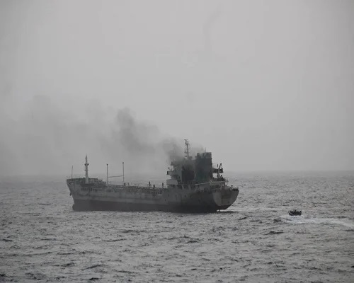 MT Yi Cheng 6: ओमान की खाड़ी में मिशन पर गए भारतीय नौसेना के युद्धपोत आईएनएस तबर को एमटी यी चेंग 6 नामक जहाज से संकट की सूचना मिली, जिसके बाद जहाज ने तुरंत कार्रवाई की और आग बुझाने का काम शुरू कर दिया। 13 भारतीय नौसैनिक और 5 चालक दल के सदस्य वर्तमान में आग बुझाने के काम में लगे हुए हैं। पुलाऊ ध्वज वाला एमटी यी चेंग 6 गुजरात के कांडला से ओमान के शिनस जा रहा था, जब रविवार को उसने संकट की सूचना दी। जहाज पर 14 भारतीय चालक दल के सदस्य सवार थे।