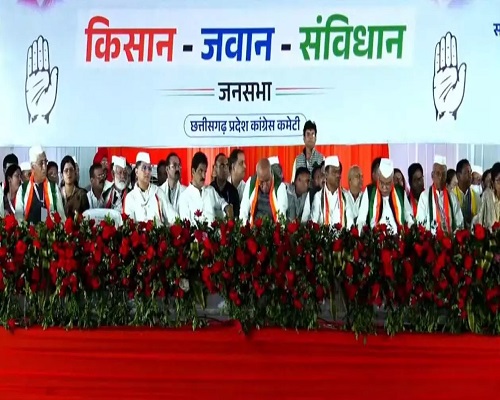 बता दें कि यह सभा रायपुर के साइंस कॉलेज मैदान में आयोजित की गई है, जहां हजारों की संख्या में कार्यकर्ता और आम जनता उमड़ी है। खड़गे ने कार्यकर्ताओं का अभिवादन स्वीकार कर सभी का धन्यवाद भी किया।