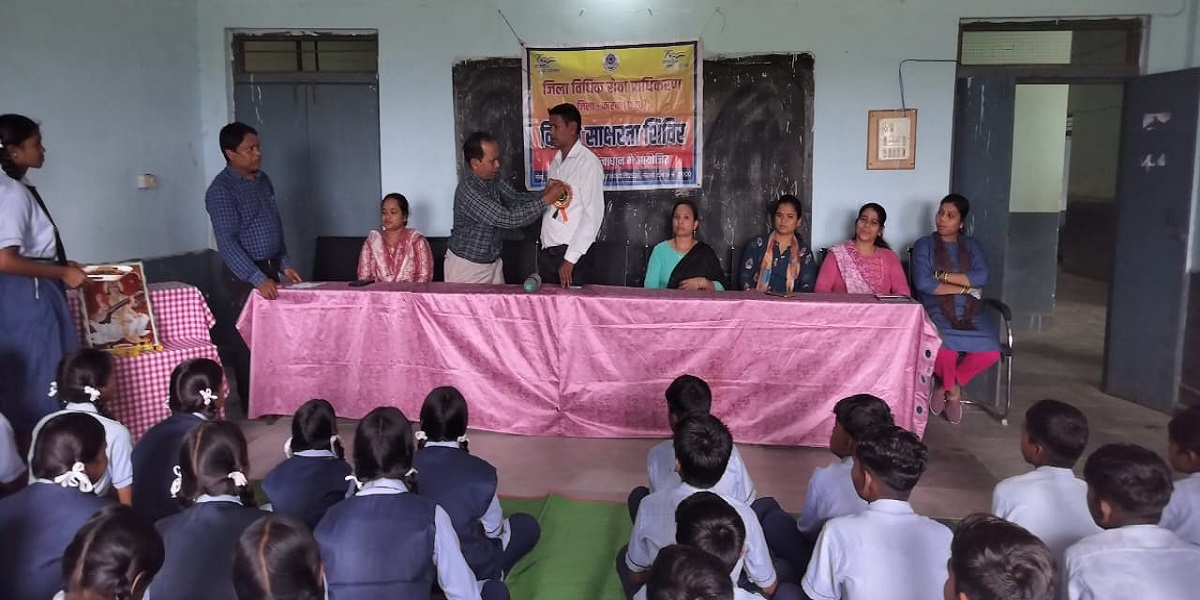 रजकम्मा (पाली)- जिला विधिक सेवा प्राधिकरण अंतर्गत सेजस मदनपुर रजकम्मा हाई स्कूल में विधिक साक्षरता शिविर का आयोजन किया गया। अधिकार मित्र नारायण कैवर्त एवं श्रीमती रमा साहू का प्रभारी प्राचार्य पुष्पक साहू ने आत्मीय स्वागत किया। अतिथियों के द्वारा माँ सरस्वती के तैलचित्र में दीप प्रज्वलित कर कार्यक्रम का शुभारंभ किया गया।वरिष्ठ व्याख्याता विनोद जायसवाल ने कार्यक्रम आयोजन के उद्देश्य को पटल पर रखा।