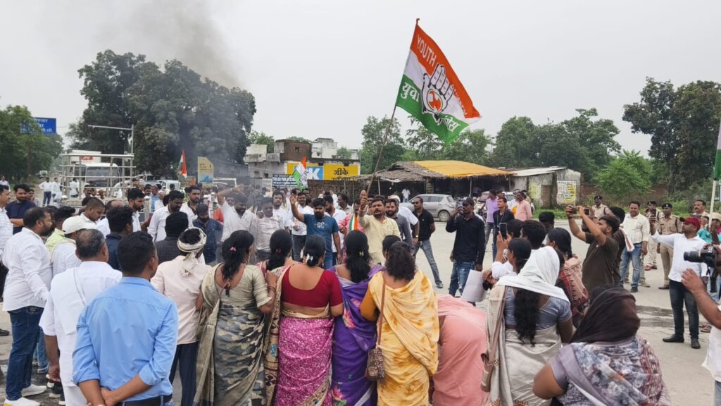 कटघोरा अम्बिकापुर नेशनल हाईवे 130 में जेन्जरा बायपास चौक पर किया चक्काजाम कर किया विरोध प्रदर्शन