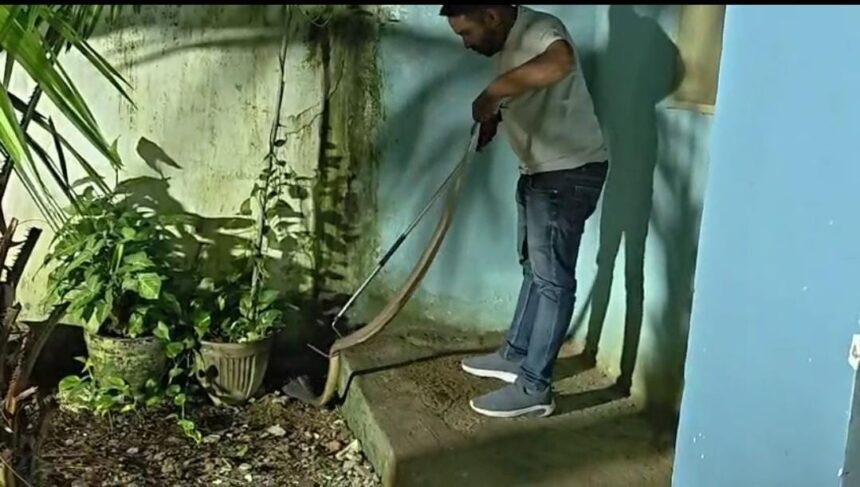 वो इतने बड़े सांप को देखते ही घर के दूसरे कमरे के अंदर भाग खड़ी हुई और आस पास के लोगों को फोन से सांप होने की जानकारी दी और मदद के लिए बुलाया फिर कुछ लोगों आए और उसको भगाने का प्रयास भी किया पर उसमें सफल नहीं हुए और वो एक किनारे गमले के पीछे जाकर बैठ गया फिर आस पास के लोगों ने इसकी जानकारी वाइल्डलाइफ रेस्क्यु टीम के प्रमुख जितेंद्र सारथी को दिया जिस पर सारथी थोड़ी देर में पहुंचने की बात कही गई.