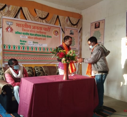 साथ ही जन कल्याणकारी योजनाएं जो पूर्ववर्ती सरकार में प्रत्येक वर्ग को लाभ मिलता था वह भी आज वर्तमान कांग्रेश की कार्यप्रणाली से लाभ तो दुर सारी योजनाएं ठप पड़ गई है निश्चित ही झूठे वादे लेकर आई कांग्रेस सरकार से छत्तीसगढ़ की जनता ठगा महसूस कर रही है ,मंडल अध्यक्ष रवि मरकाम जी,पूर्व मंडल अध्यक्ष प्रह्लाद बिनझवार ज़ी,महामंत्री चंद्रप्रताप सिंह जी,महामंत्री जायसाल जी एवं प्रशिक्षण हेतु कार्यकर्ता उपस्थित थे!