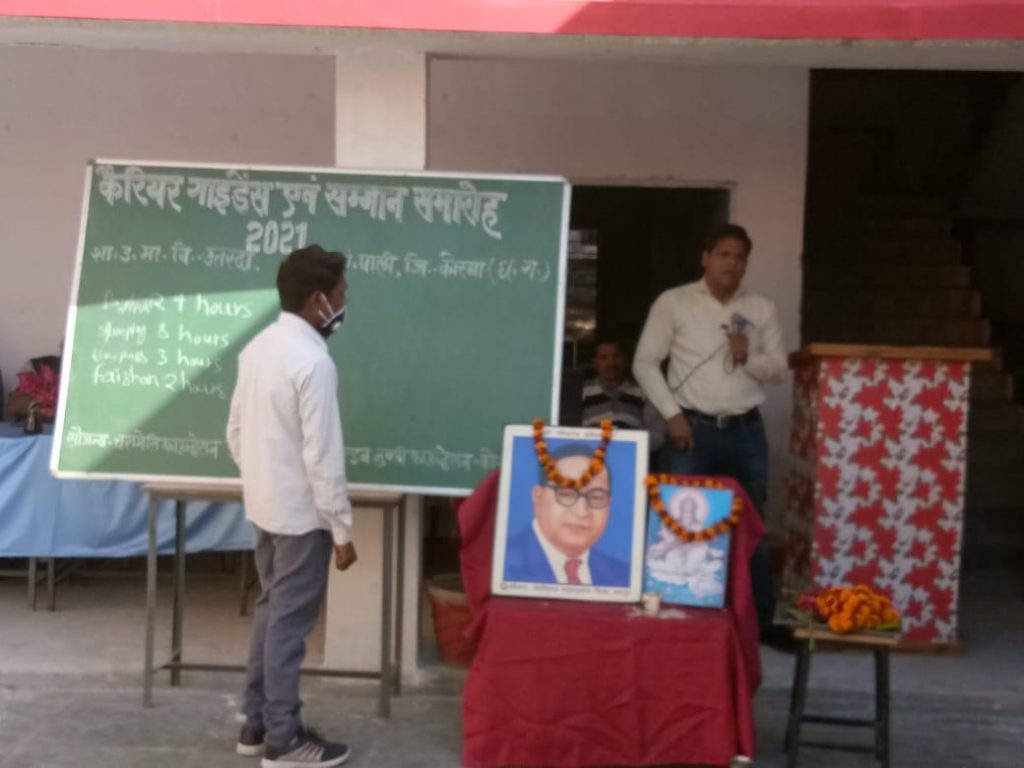कोरबा/उतरदा (KRB24 News) : जिलाधीश श्रीमती किरण कौशल के शिक्षा के विकास एवं बच्चों को कैरियर गाइडेंस प्रदान करने की की अवधारणा तथा जिला शिक्षा अधिकारी श्री सतीश पाण्डेय के बोर्ड परीक्षा के विद्यार्थियों को मार्गदर्शन प्रदान करने संबंधित महत्वपूर्ण कार्यक्रम बोर्ड परीक्षा के परीक्षार्थियों से सीधी बात का कार्यशाला कोविड-19 के प्रोटोकॉल को पालन करते हुए शासकीय उच्चतर माध्यमिक विद्यालय उतरदा में चरामेति फाउंडेशन , एलआईसी सिल्वर जुबली फाउंडेशन एवं विद्यालय के संयुक्त तत्वाधान में शासकीय उच्चतर माध्यमिक विद्यालय उतरदा के व्याख्याता श्री राकेश टंडन के मार्गदर्शन तथा प्रभारी प्राचार्य श्री जी.पी. लहरें के निर्देशन में कार्यक्रम संपन्न हुआ.